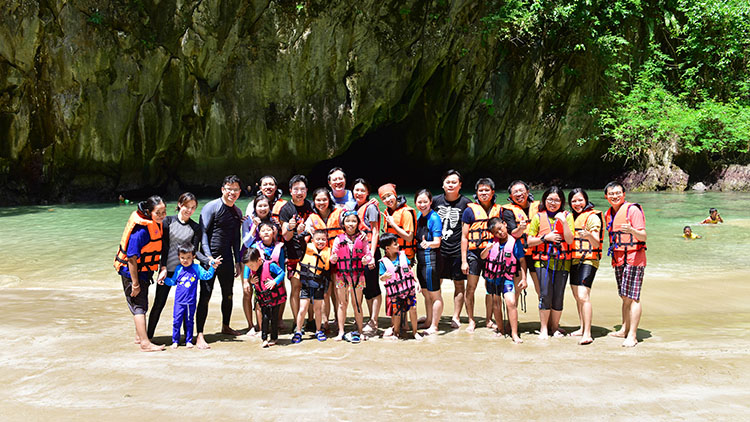 The cave has entrance passage on the islands western side of Koh Mook that is accessible by boat or swim during low tide. About 80 meters from a side of entrance to the other exit, opening on to a clean white beach with an emerald color which is surrounded by high cliffs.